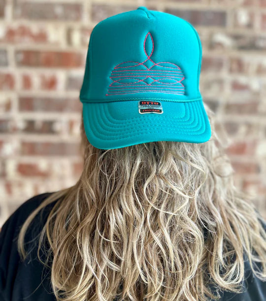 -Jade Foam Trucker Hat with Hot Pink embroidered thread