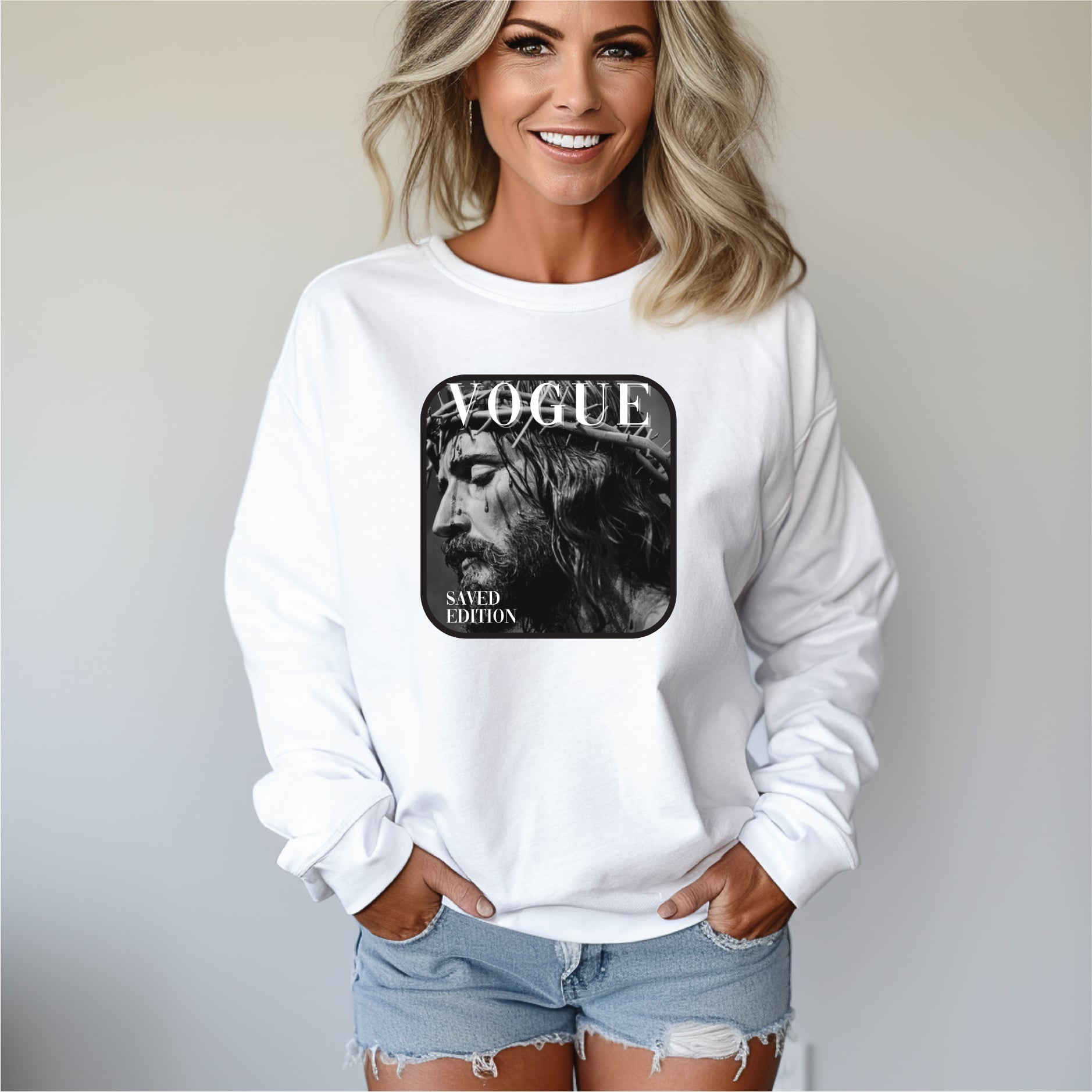 Sweatshirt Color & Brand: White  Tultex Sweatshirt (Bella Canvas Tee)