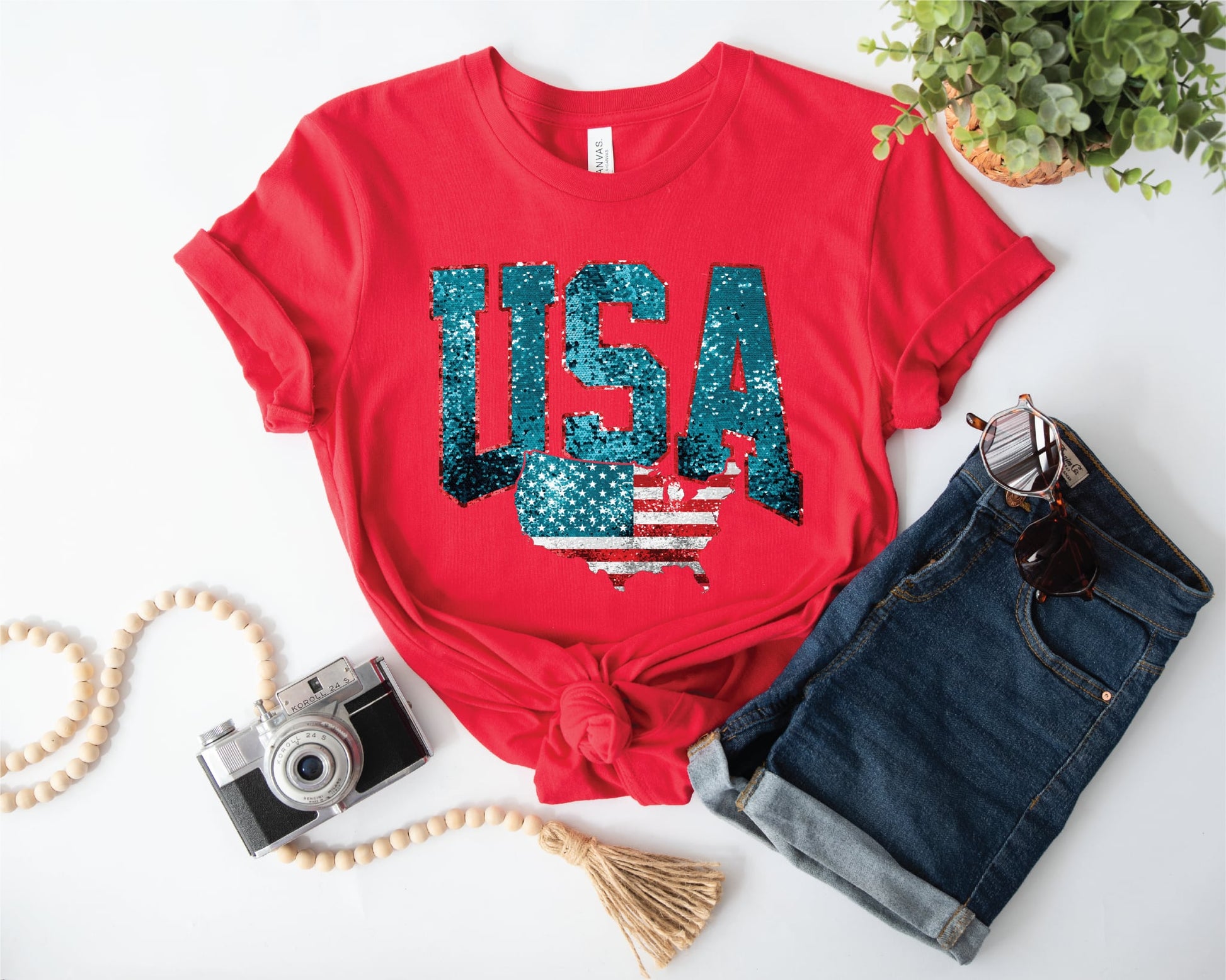 USA Faux Glitter Unisex Graphic Tee